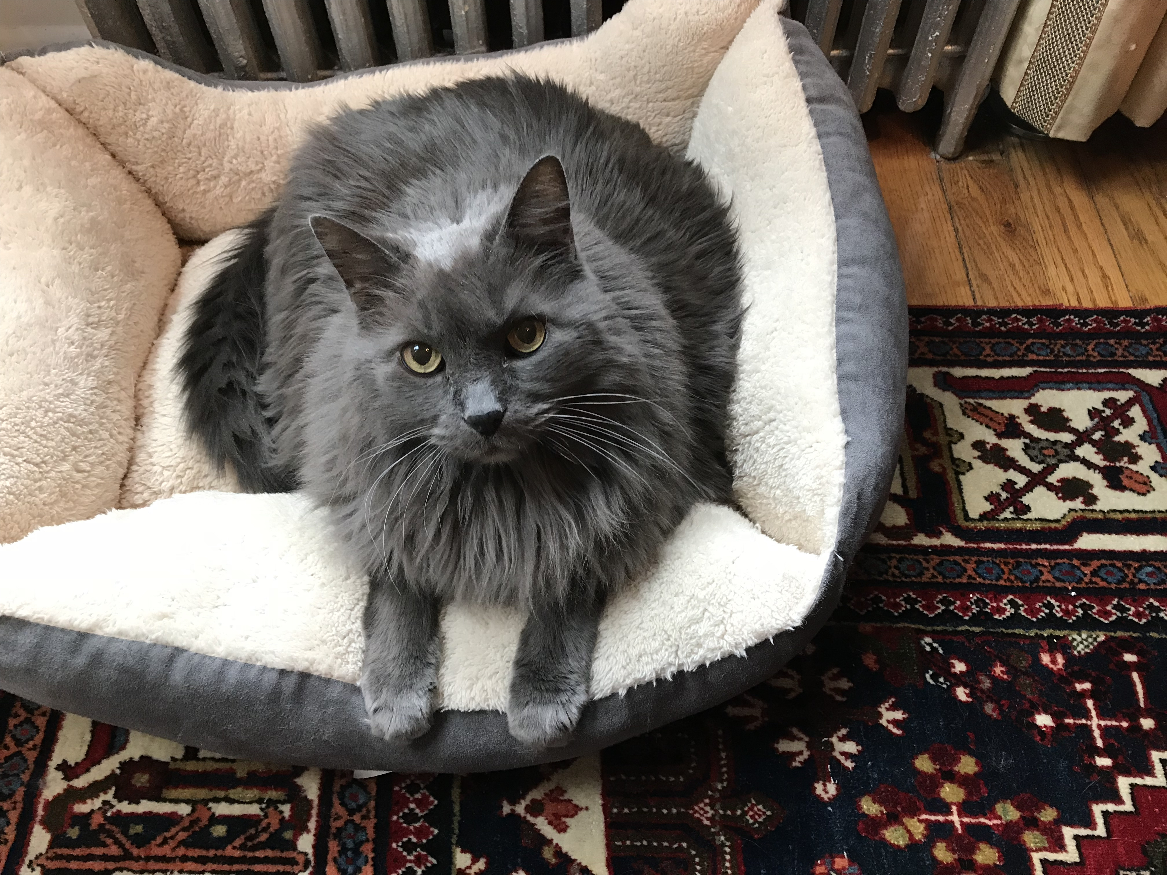 He can’t go with me,” said the old woman cradling a tabby while I pawed through cat toys piled on her yard sale table. “I don’t know what to do.” Through bleary eyes, she saw me. I reached for her cat. “Wait here,” she said. And returned with two more.